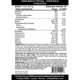 Everbuild 100% LEAN MASS BUILD: ¡un ganador de masa muscular magra alto en proteínas, matriz de creatina y suplemento de aminoácidos! MASS BUILD es un producto triplemente complejo diseñado para masa muscular magra, fuerza y una recuperación de vanguardia. MASS BUILD no es un simple ganador de masa muscular alto en carbohidratos. Cada porción también proporciona una cantidad significativa de matriz proteica de alta calidad procedente de fuentes con alto Valor Biológico (VB) y Ratio de Eficiencia Proteica (PER): ¡material proteico de fácil digestión para el desarrollo muscular que realmente utiliza para ganar volumen donde realmente importa!