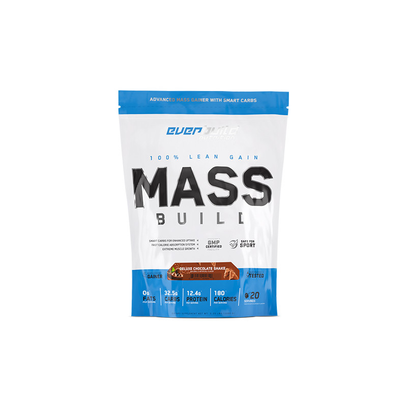 Everbuild 100% LEAN MASS BUILD: ¡un ganador de masa muscular magra alto en proteínas, matriz de creatina y suplemento de aminoácidos! MASS BUILD es un producto triplemente complejo diseñado para masa muscular magra, fuerza y una recuperación de vanguardia. MASS BUILD no es un simple ganador de masa muscular alto en carbohidratos. Cada porción también proporciona una cantidad significativa de matriz proteica de alta calidad procedente de fuentes con alto Valor Biológico (VB) y Ratio de Eficiencia Proteica (PER): ¡material proteico de fácil digestión para el desarrollo muscular que realmente utiliza para ganar volumen donde realmente importa!