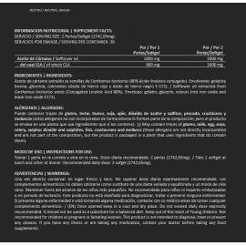 INGREDIENTES: Aceite de cártamo 80% ácido linoleico conjugado, envolvente (gelatina bovina), glicerina, colorantes (óxido de hierro rojo y óxido de hierro negro).