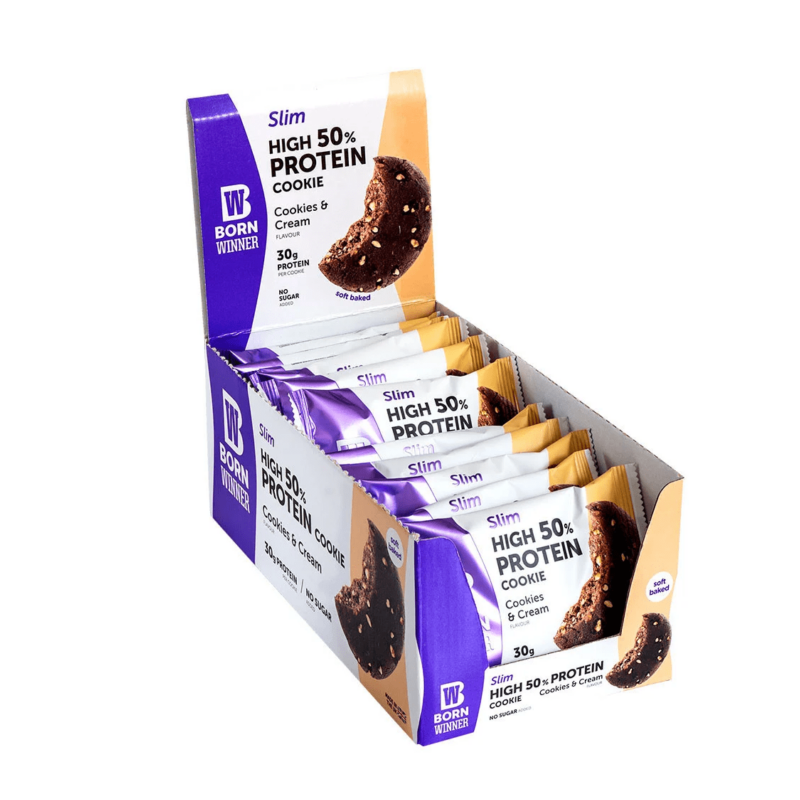 Su bajo contenido en grasa y la ausencia de azúcares simples hacen que las galletas de la Serie Born Winner Slim sean ideales para quienes siguen una dieta estricta. Cada galleta contiene un 50 % de proteína y menos de 1 g de azúcar.
