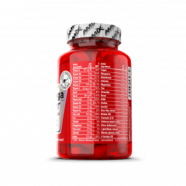 Ingredientes: Fosfato dicálcico, óxido de magnesio, ácido ascórbico (vitamina C), relleno: celulosa microcristalina; Dl-alfa tocoacetato (vitamina E), fumarato ferroso, Echinacea purpurea - extracto aéreo, Eleutherococcus senticosus - extracto de raíz (gingseng siberiano), estabilizantes: ácido esteárico, croscarmelosa sódica; agente de recubrimiento: carbonato de calcio; cloruro de potasio, bitartrato de colina, bioflavonoides cítricos, nicotinamida (niacina), óxido de zinc, inositol, agente de recubrimiento: hidroxipropilcelulosa; antiaglomerantes: estearato de magnesio y dióxido de silicio. D-pantotenato cálcico (vitamina B5), L-cisteína HCl, sulfato de cobre, sulfato de manganeso, piridoxina HCl (vitamina B6), tiamina HCl (vitamina B1), riboflavina (vitamina B2), PABA (ácido para-aminobenzoico), betaína HCl, estabilizante: isomaltosa; emulgente: hidroxipropilmetilcelulosa; ácido pteroilmonoglutámico (ácido fólico), colecalciferol (vitamina D3), biotina (1%), betacaroteno (vitamina A), escaramujos - polvo - fruto, plastificante: triglicéridos de cadena media, selenato de sodio (1%), L-glutatión reducido, cianocobalamina 1% (vitamina B12), colorante: amarillo ocaso FCF; acetato de retinilo (vitamina A), coenzima Q10, fitomenadiona 5% (vitamina K1), ácido bórico, yoduro de potasio, cloruro de cromo, molibdato de sodio.